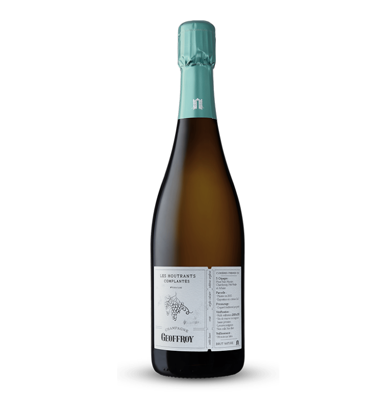 La Maison Geoffroy signe un champagne atypique avec la cuvée Les Houtrants Complantés. Issue de la complantation, l’une des formes les plus anciennes de viticulture, cette cuvée réunit cinq cépages champenois : Pinot Noir, Pinot Meunier, Chardonnay, Arbanne et Petit Meslier.